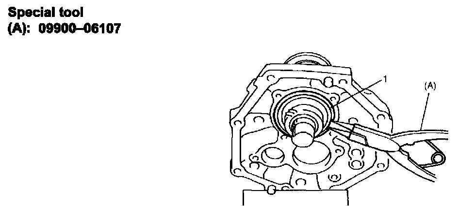 14) Select circlip (1) that will make clearance in circlip groove 0.1 mm (0.0039 inch) or less.