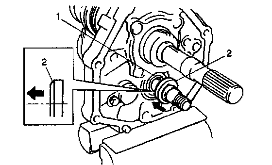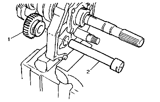 8) Install reverse idle gear (1) and shaft (2).