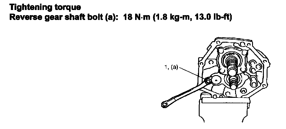 9) Tighten reverse gear shift bolt (1) to specification.