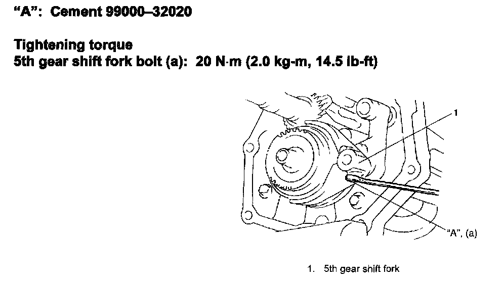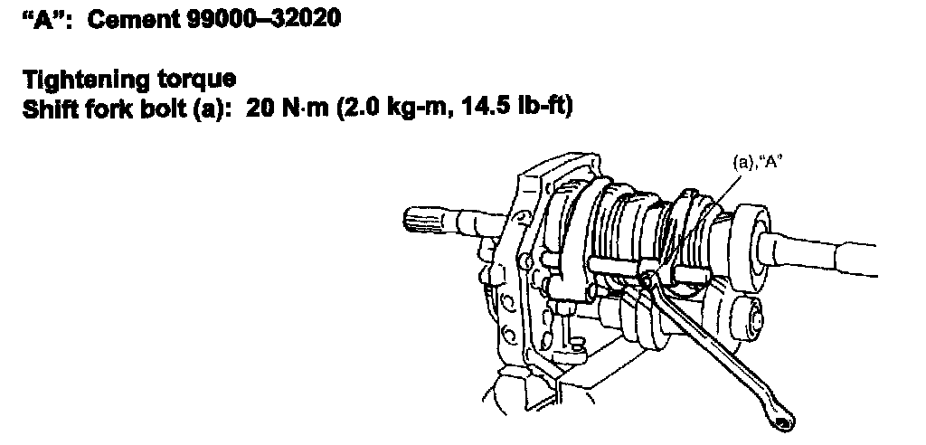22) Apply thread lock cement "A" to thread of fork bolt and tighten bolt to specification.