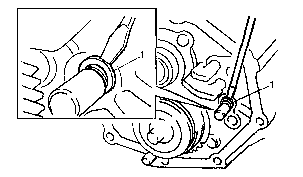 19) Fix new circlip (1) to high gear shift shaft by using lever or the like and hammer.
