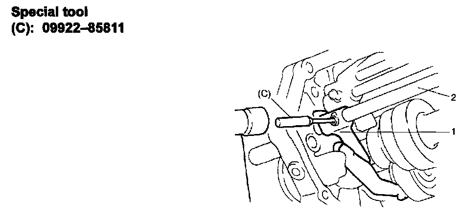 3) Fix with C-ring (1) by using special tool.