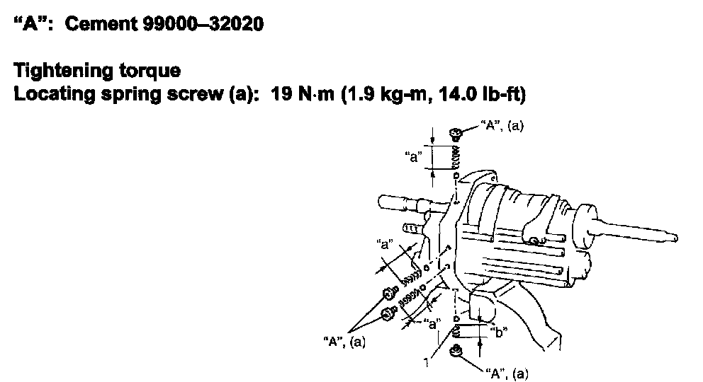 44) Apply cement "A" to inner gear shift shaft bolt / plug and tighten them to specification.