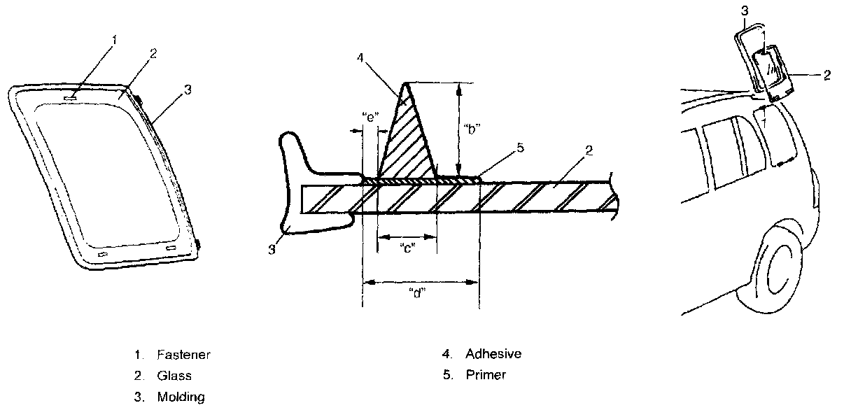 - Before applying primer to glass edge, install molding according to installing position shown in the figure.