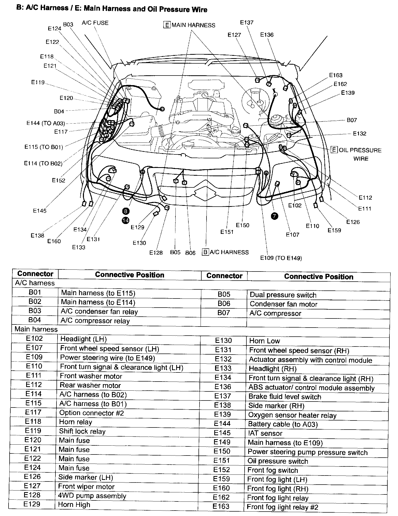 B: A/C Harness / E: Main Harness And Oil Pressure Wire:
