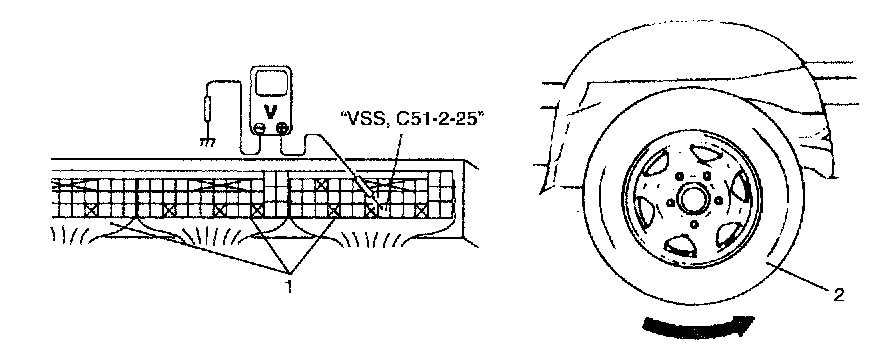 5. Turn ignition switch ON and turn rear right tire slowly with rear left tire locked.