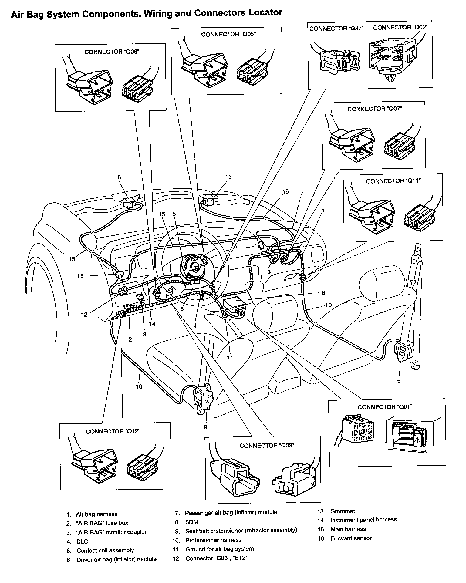 Air Bag System Components, Wiring And Connectors Locator: