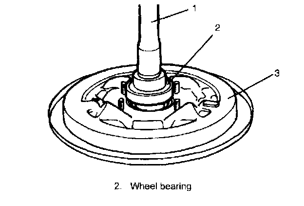 8. Remove brake back plate (3) from rear axle shaft (1).