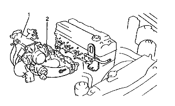 11. Remove intake manifold (1) from cylinder head, and then its gasket (2).