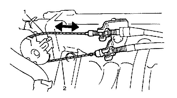 ^ Adjust accelerator cable (1) play and A/T throttle cable (2) play (for vehicle with A/T).