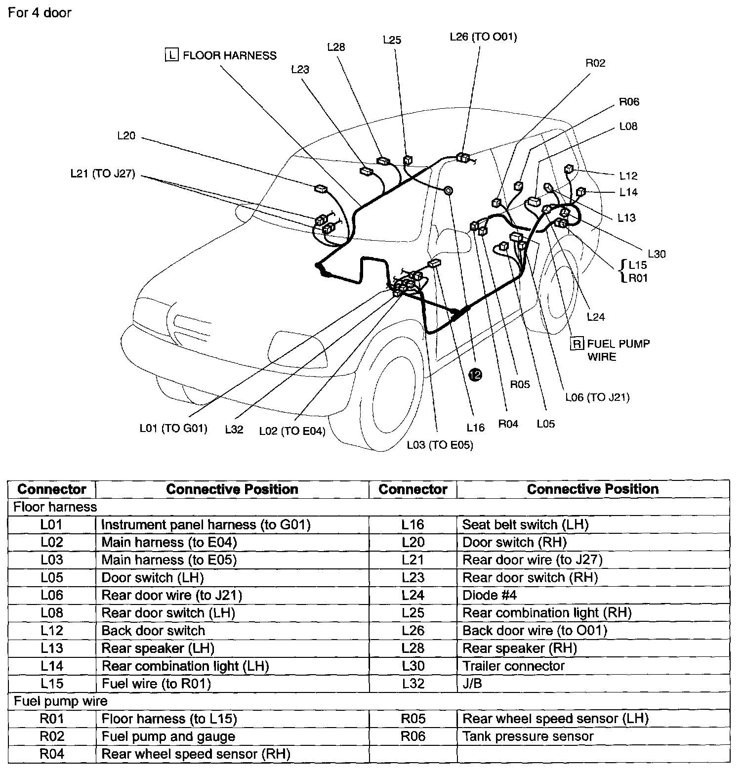 Floor L: Floor Harness / R: Fuel Pump Wire - For 4 Door: