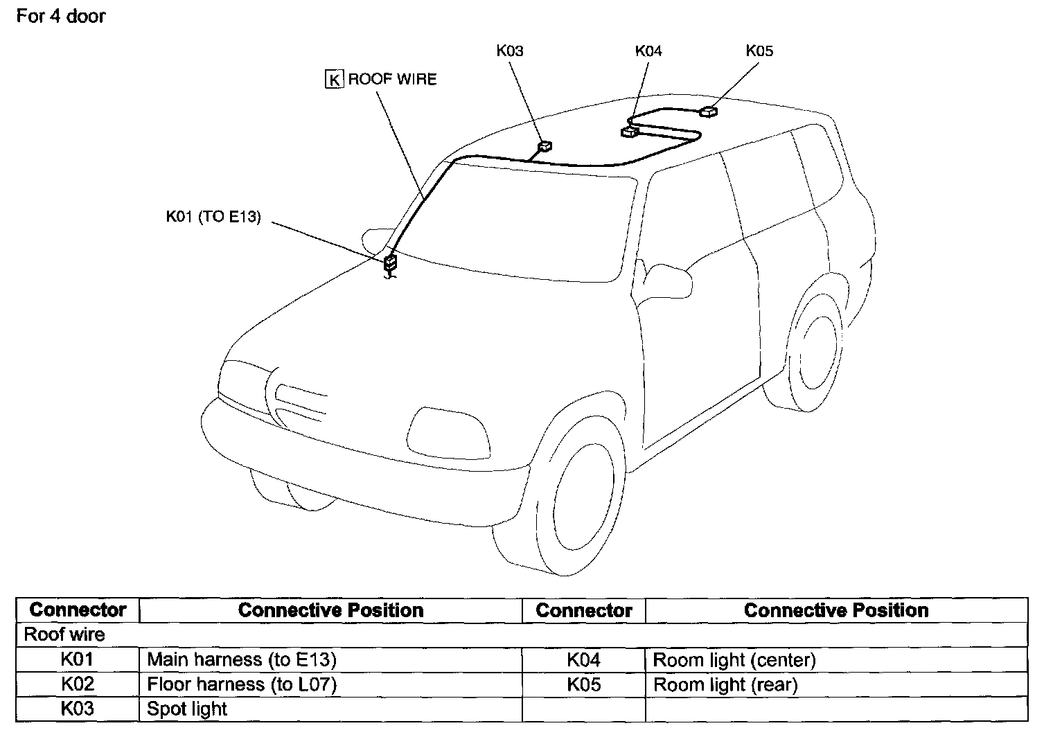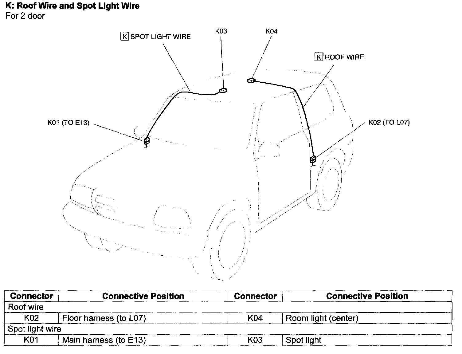 Roof K: Roof Wire And Spot Light Wire - For 4 Door: