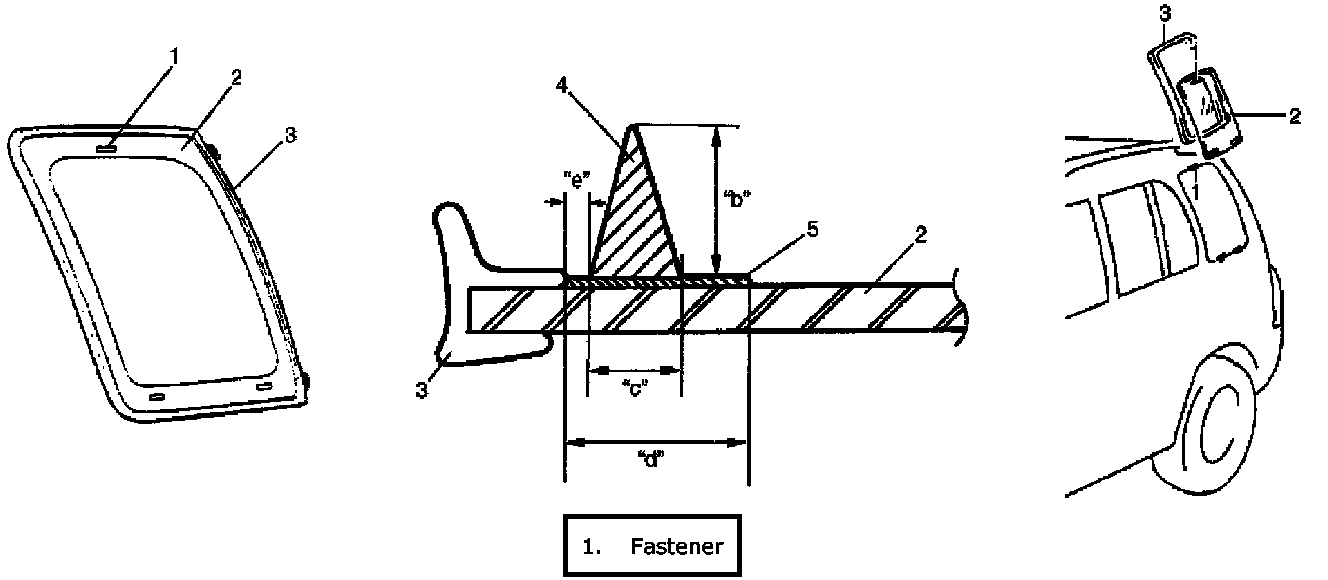 - Before applying primer (5) to glass edge, install molding (3) according to installing position shown in the figure.