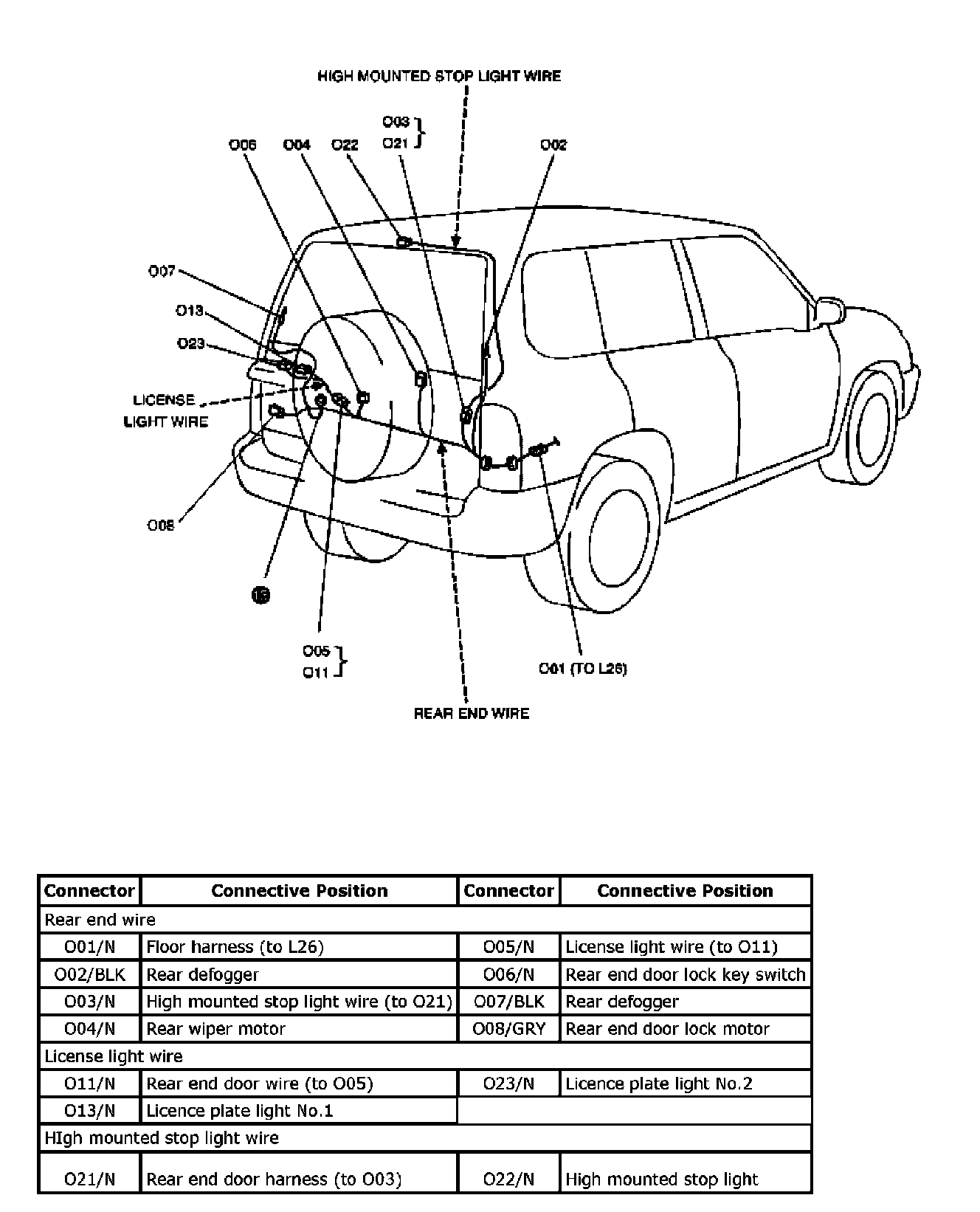 0: Rear End Wire, License Light Wire And High Mounted Stop Light Wire: