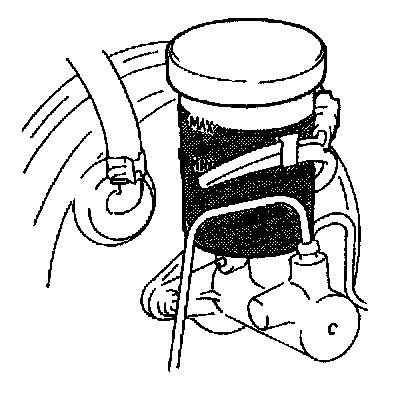 CAUTION: Since brake system of this vehicle is factory-filled with glycol-base brake fluid, do not use or mix different type of fluid when refilling system; otherwise serious damage will occur. Do not use old or used brake fluid, or one taken from unsealed container.