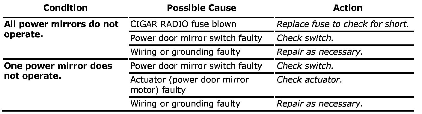 Power Door Mirror Control System Symptom Diagnosis: