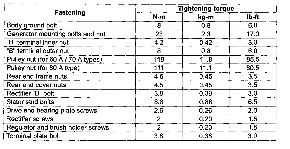 Tightening Torque Specifications: