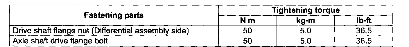 FRONT DRIVE SHAFTTightening Torque Specifications