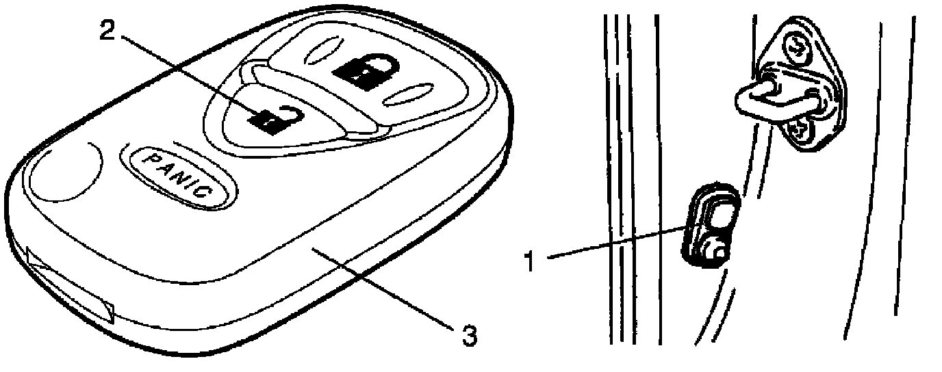 6. Push "UNLOCK" button (2) on transmitter (3) and confirm that all doors are operated from lock to unlock.