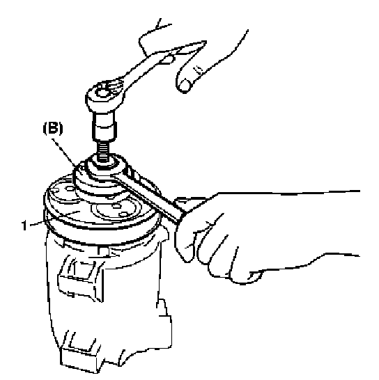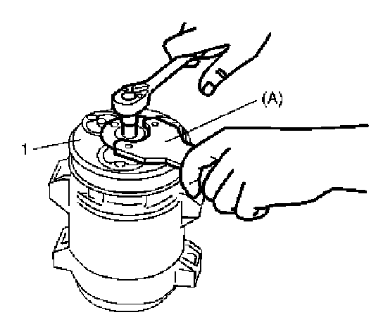 4. Using special tool (A), tighten new armature plate bolt (1) to specified torque.