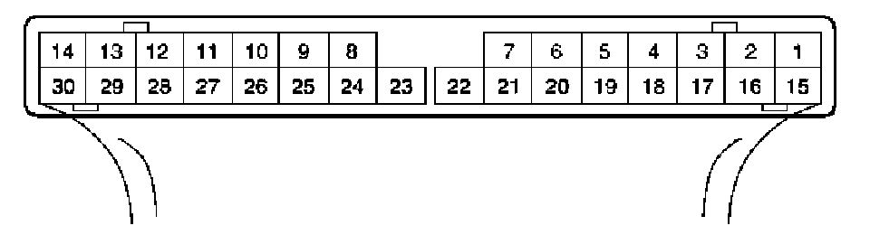Terminal arrangement of HVAC control module (viewed from harness side)