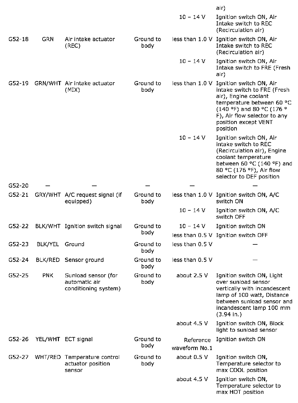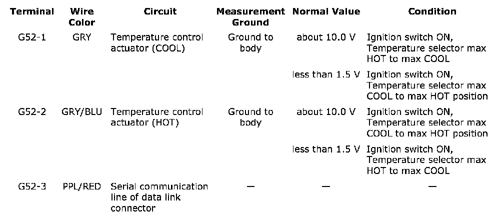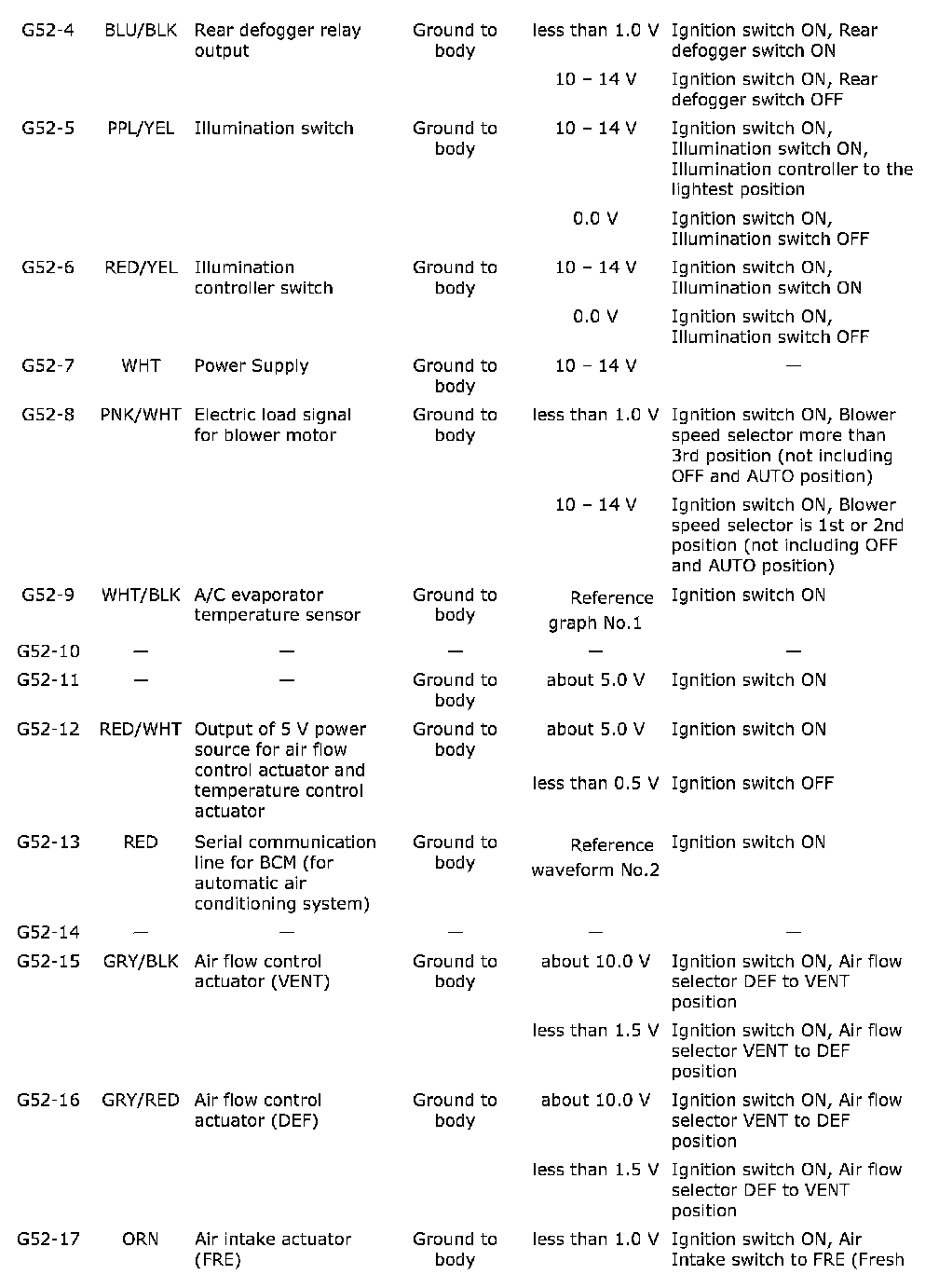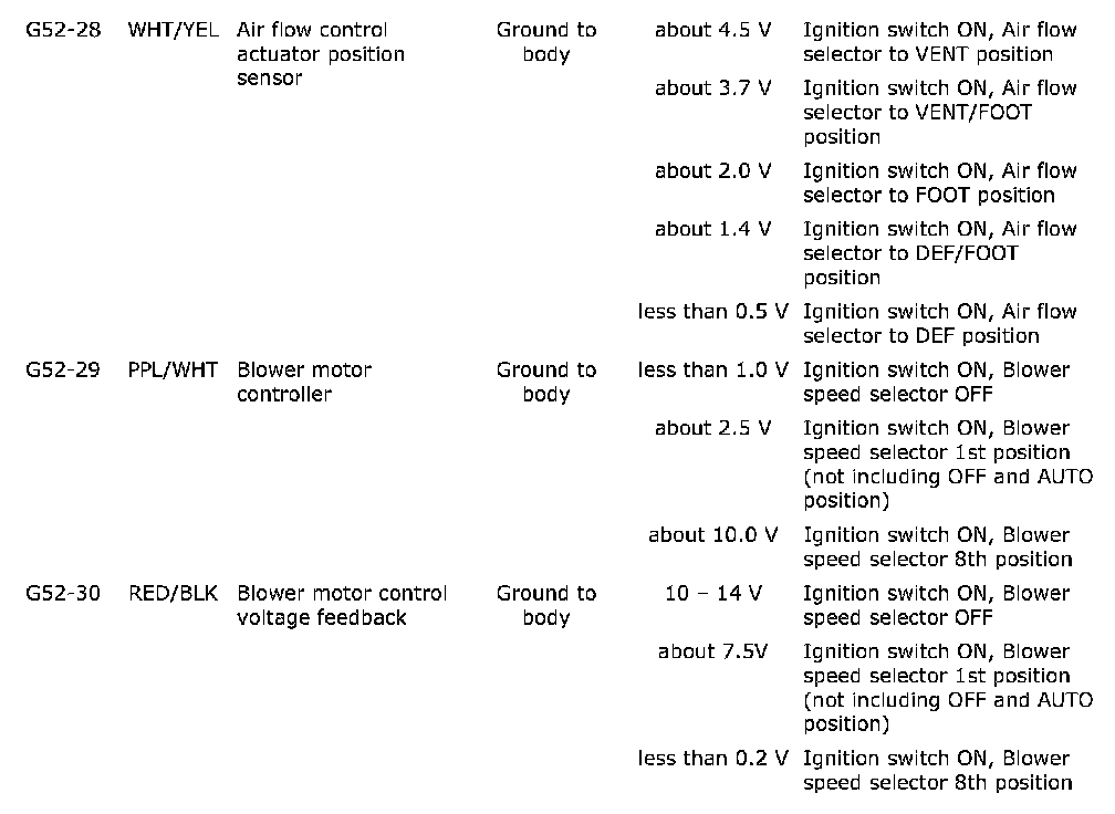 3. Check each terminal voltage with couplers connected by referring to HVAC Control Module Voltage Table.