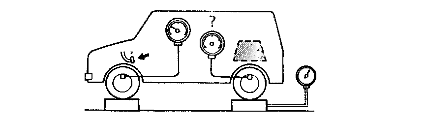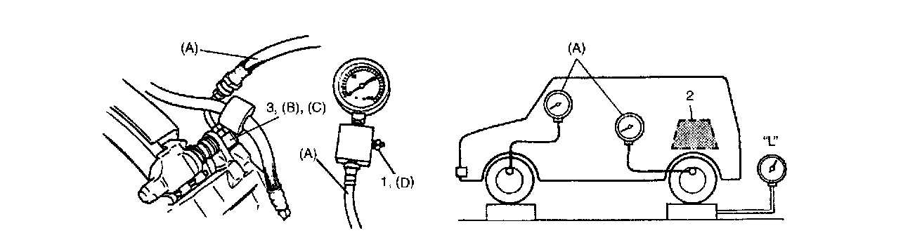 4. As done Step 3), apply 100 kgf/cm2 pressure to front brake and check that rear brake pressure then is within specification.