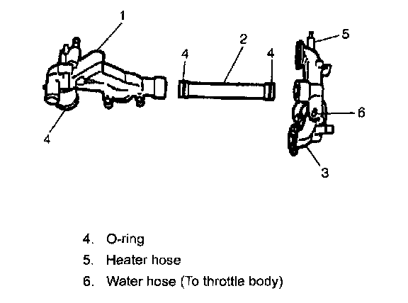 7. Install radiator outlet pipe (3) to thermostat case with new O-ring.