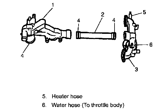 6. Disconnect heater inlet hose (5) from water outlet cap (3).