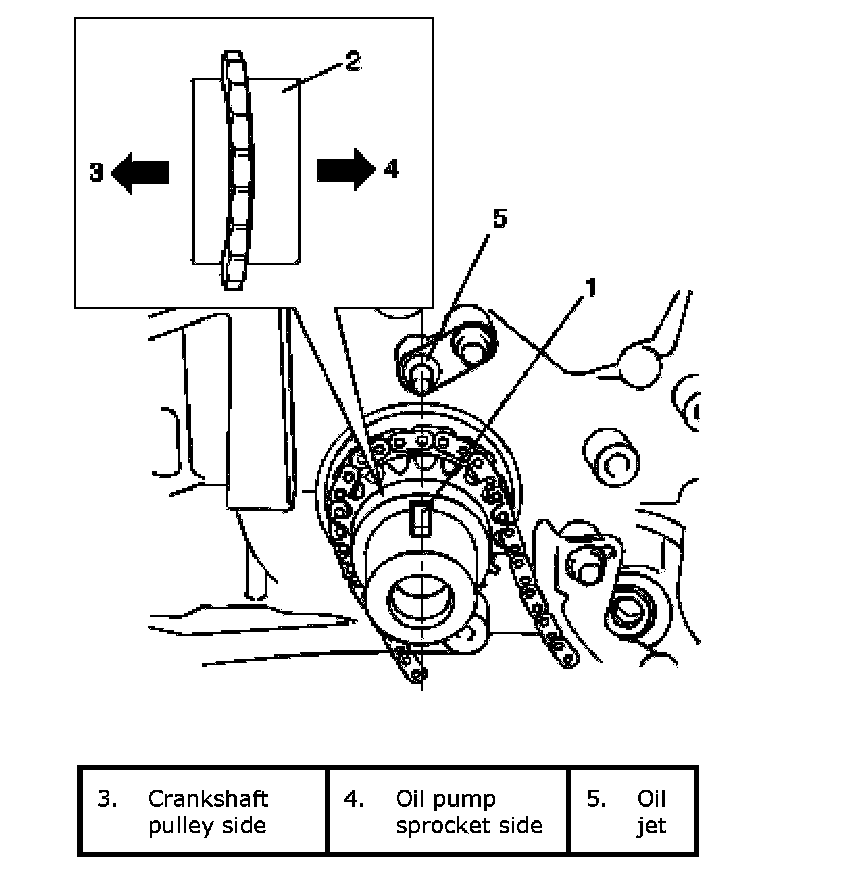 ^ Install 1st timing chain crankshaft sprocket (2) to crankshaft as shown in figure.
