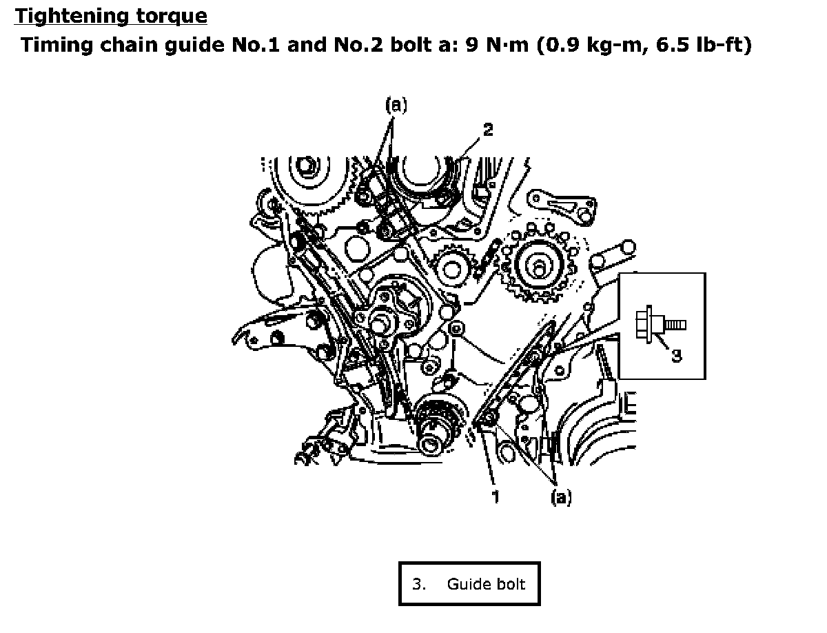 Timing chain tensioner nut b: 25 Nm (2.5 kg-m, 18.0 ft. lbs.)