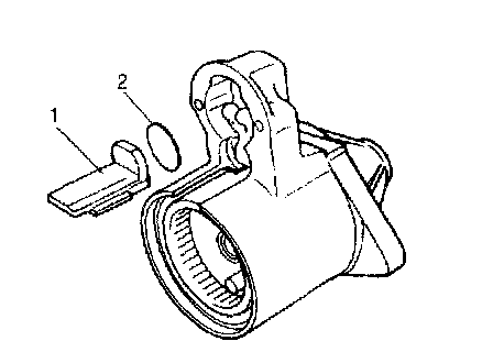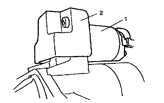 1. Remove protector (2) (if equipped) and magnetic switch (1).