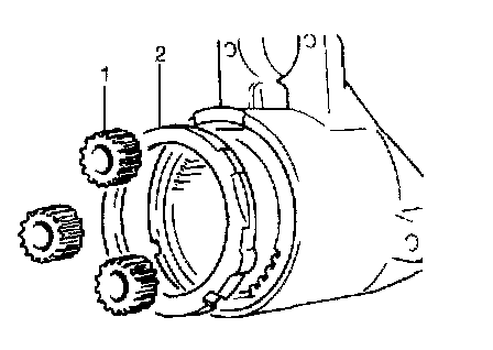 6. Loosen pinion stop ring (2) fixed by snap ring (1).