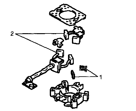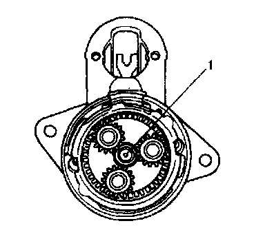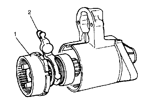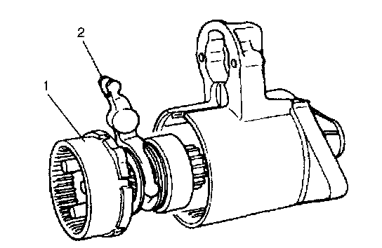 2. Remove bolts (1) shown in the figure, then separate reduction gear assembly (2) from starting motor assembly.