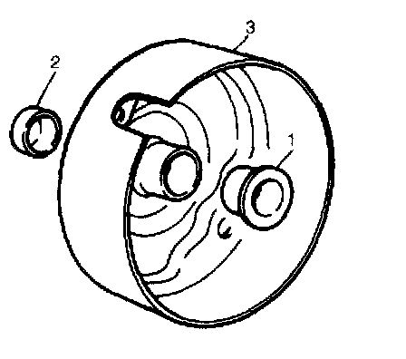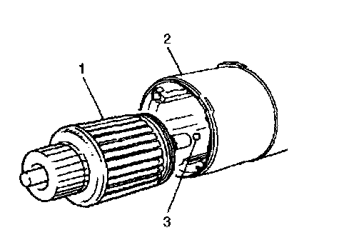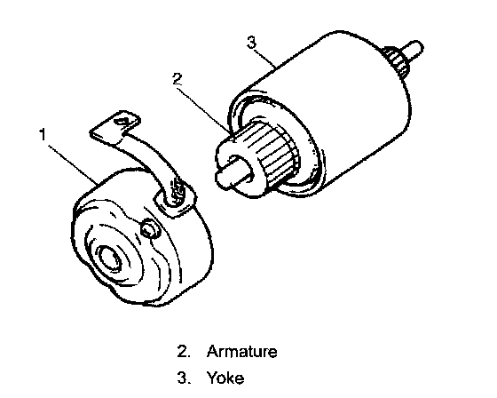 9. Remove armature (1) from yoke (2) and then ball (3) from the end of armature shaft.
