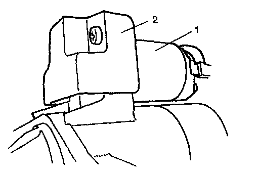 16. Install magnetic switch assembly (1) and protector (2) (if equipped). Connect wire (switch to motor) to switch terminal.