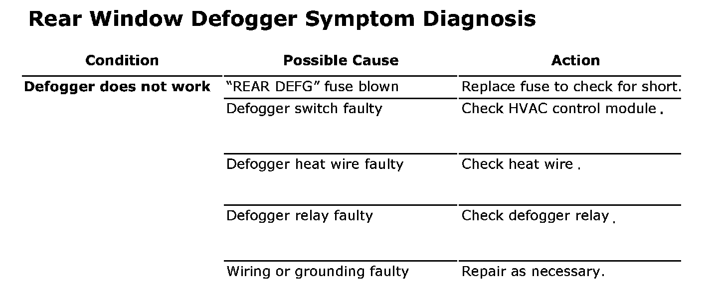 Rear Window Defogger Symptom Diagnosis: