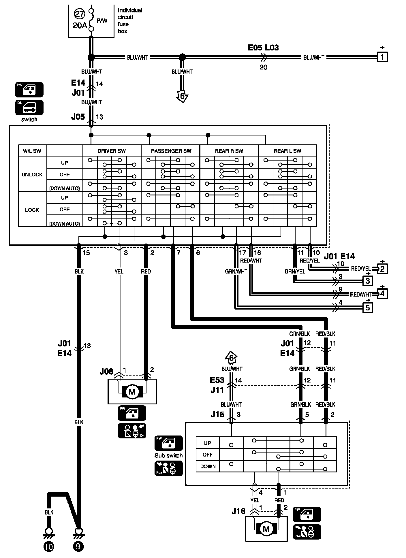 Power Window Circuit Diagram 1: