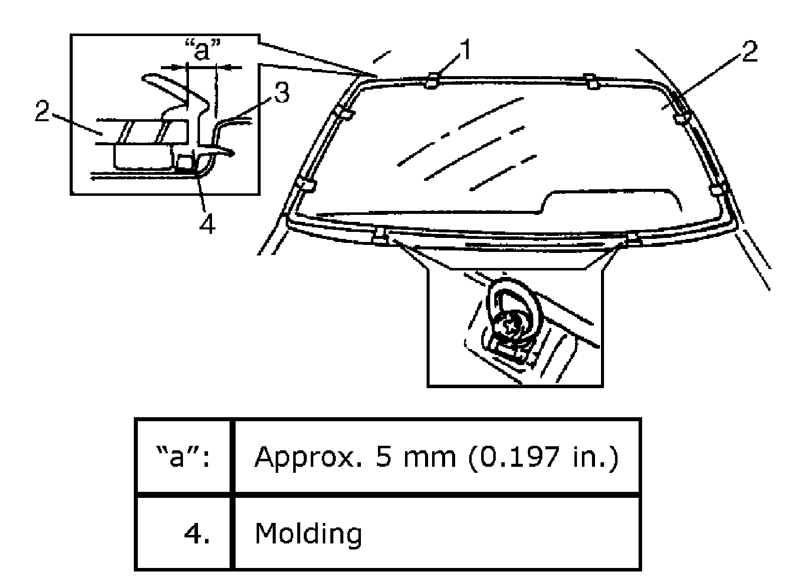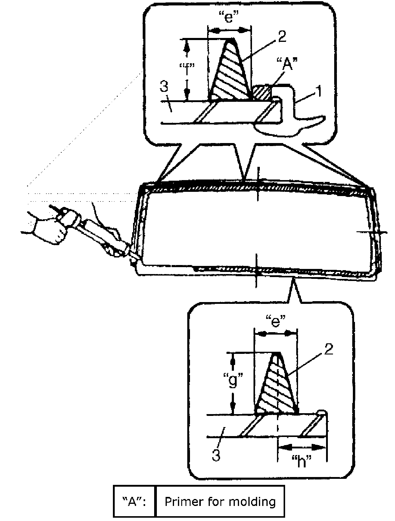 Adhesive amount specifications for windshield (upper, right and left sides)