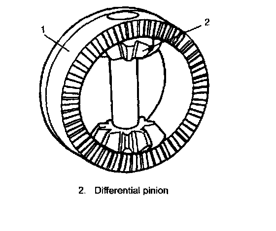 Check teeth of axle lock clutch (2) fitted to differential right case for wear, damage and any other faulty condition.