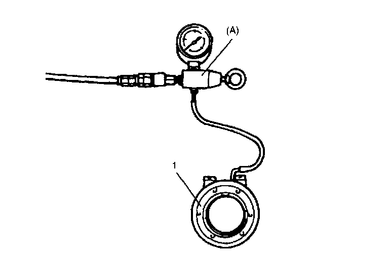 1. Connect special tool, air compressor, actuator (1) and hoses as shown in the figure.