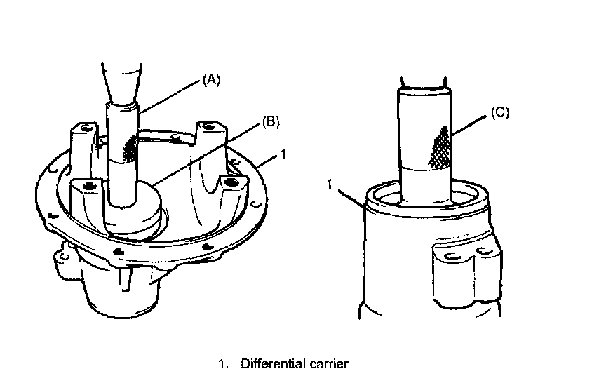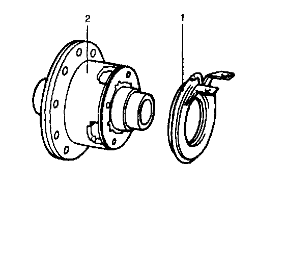 7. Using special tool and plastic hammer drive oil seal (2) into differential carrier (1) till it becomes flush with carrier end. Then apply grease to oil seal lip.