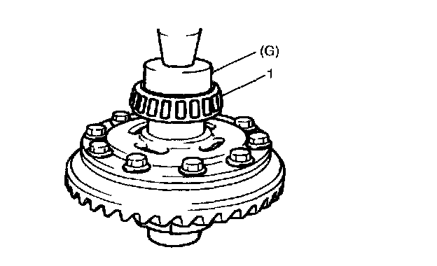 1. Install bevel pinion dummy with bearings into differential carrier and tighten flange nut (1) so that specified bearing preload is obtained.