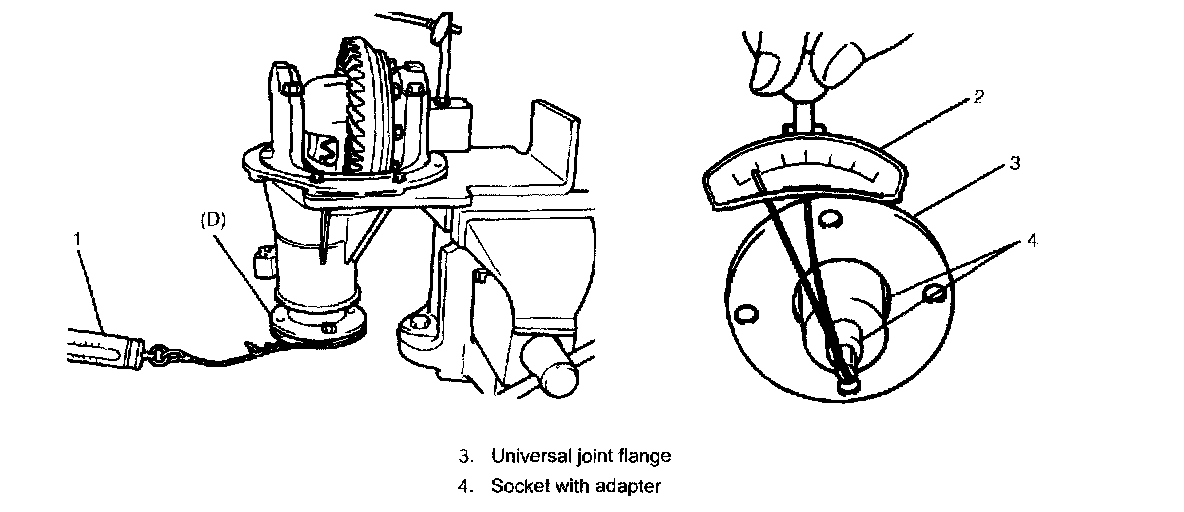 8. Measure preload of pinion with spring balance (1) or torque wrench (2) and check composite preload of pinion bearing and side bearing.