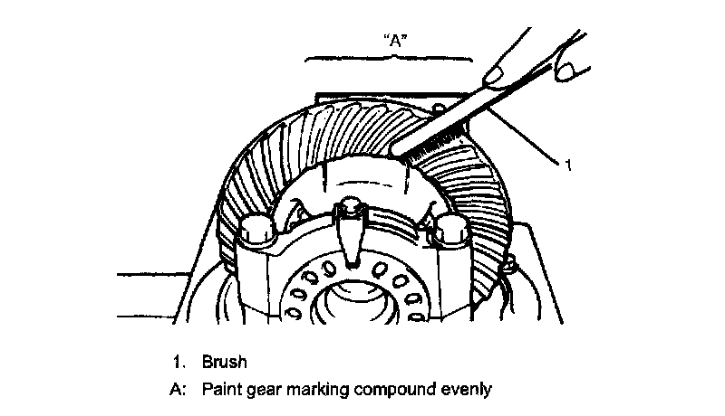 a. After cleaning tooth surface of 10 bevel gears, paint them with gear marking compound evenly by using brush or sponge etc.