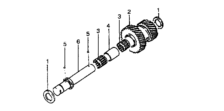 25. Install needle bearing (3), spacer (4), counter gear (2), steel balls (5) and washers (1) onto shaft (6).