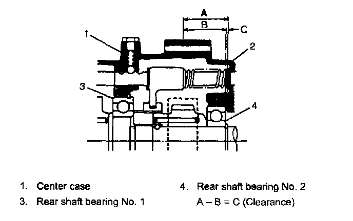36. Before assembling rear case (2), shim adjustment is required. Follow steps described below.