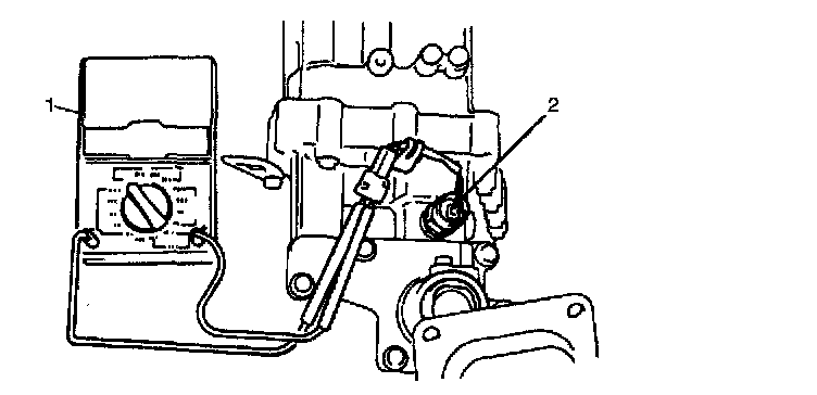 47. Confirm 4WD switch (2) has turned ON at 4WD position (4H and 4L) by using ohmmeter (1).