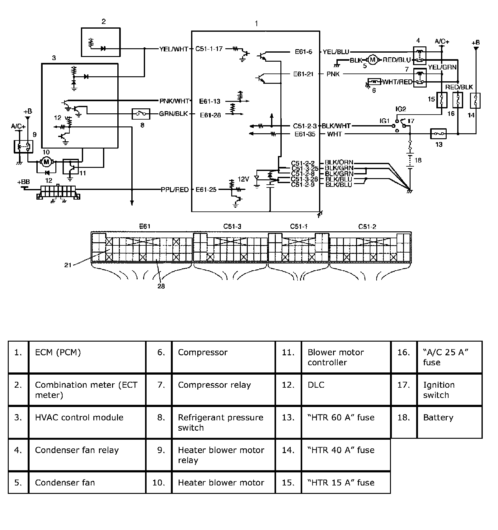 A/C Condenser Fan Motor Relay Control System CheckWiring Diagram: