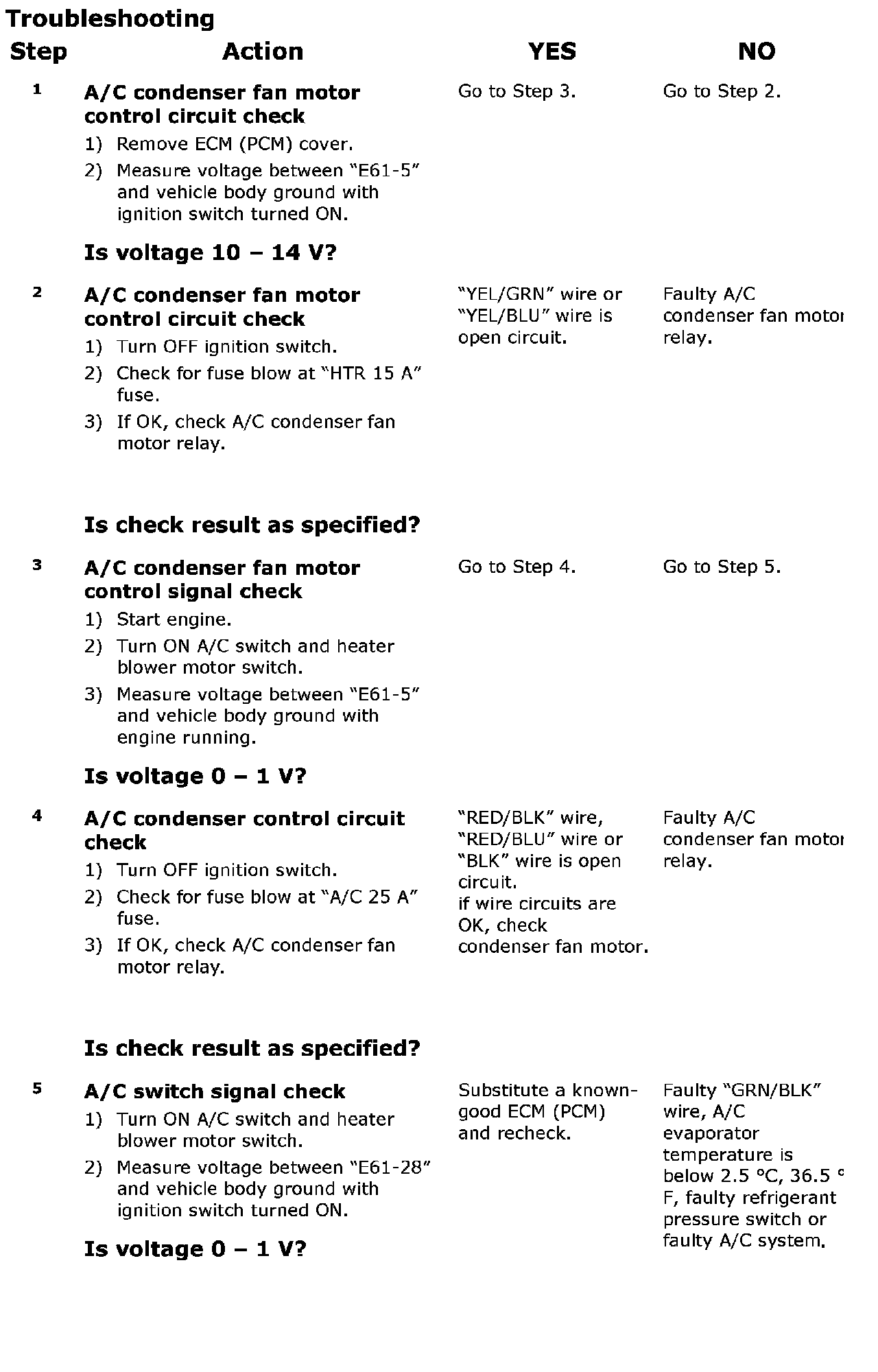 A/C Condenser Fan Motor Relay Control System Check